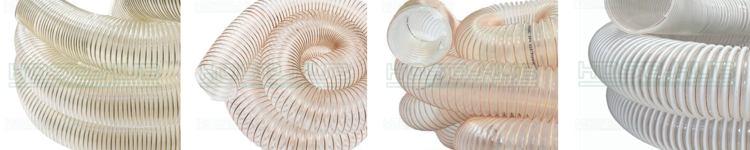 ท่อดูดเม็ดพลาสติก PVC Duct Hose เป็นท่อยืดหยุ่นสำหรับงานลำเลียงวัสดุ เม็ดพลาสติก ผงวัตถุดิบ ท่อผลิตจากวัสดุ Polyvinyl Chloride (PVC) เสริมด้วยขดลวดสปริงเหล็ก (Steel Wire Helix) แข็งแรง เบา ไม่ยุบตัวเมื่อได้รับแรงดูด นิยมใช้ในสายการผลิตพลาสติก